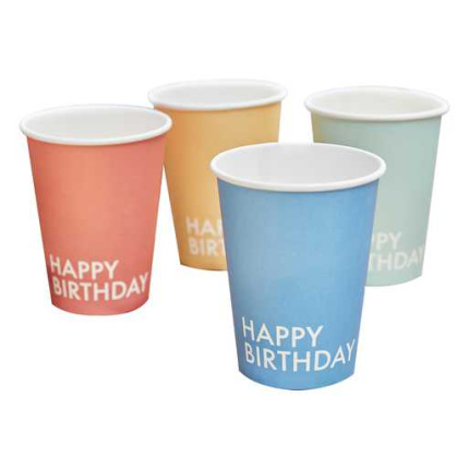Copos Cores Boho HAPPY BIRTHDAY – Pack 8