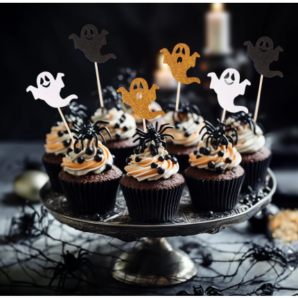 6 Topos de Bolo Fantasmas Glitter Halloween