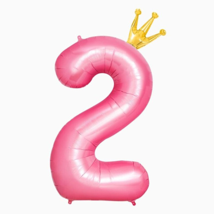 Balão Número 2 Rosa com Coroa Ouro – 123cm