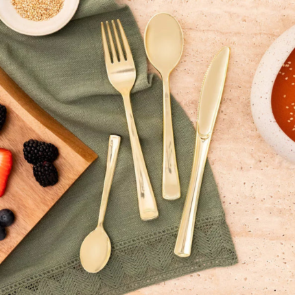 Colheres Sobremesa de Plástico Dourada – Pack 24