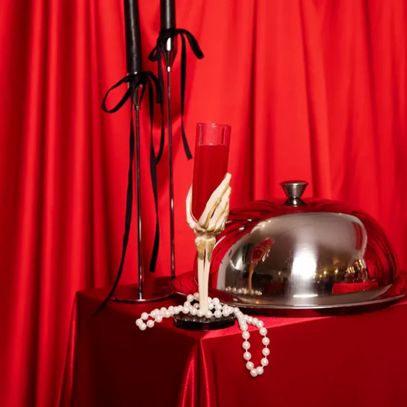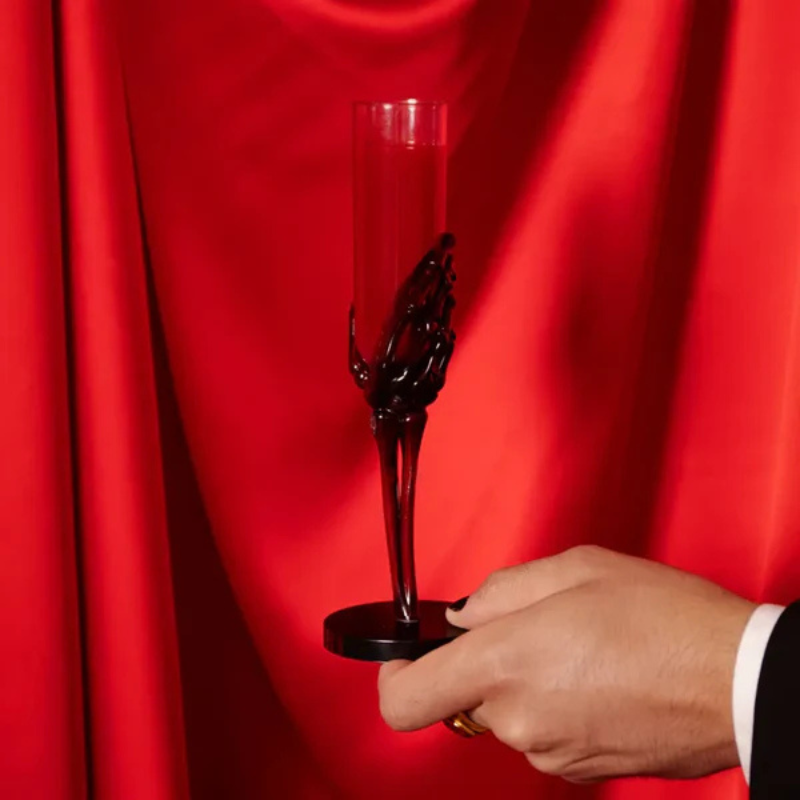 Copo de plástico rígido e reutilizável, com design mão de esqueleto, nas cores preto e branco perfeito para festas de Halloween. Resistente, prático e ideal para criar um ambiente arrepiante.