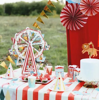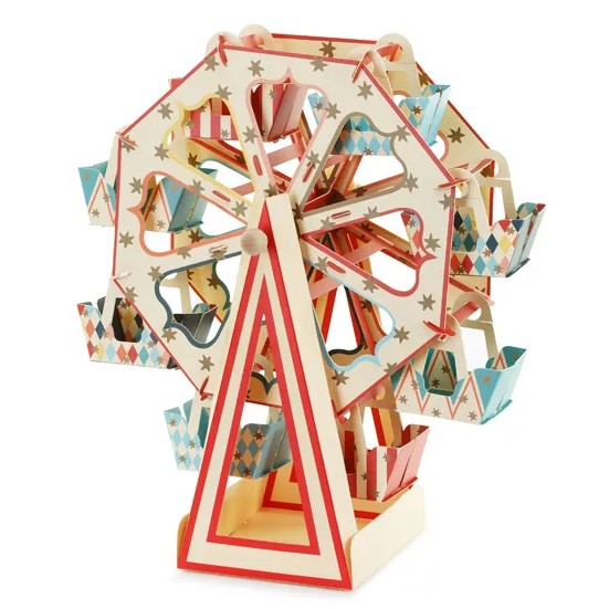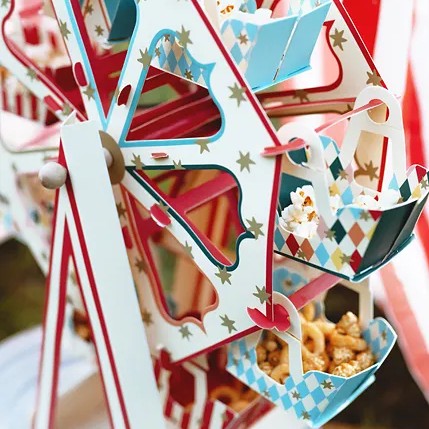 Transforme a sua mesa de doces num verdadeiro parque de diversões! Esta incrível roda gigante em papel traz um toque lúdico e original à decoração, com 8 cabines para lanches ou doces.