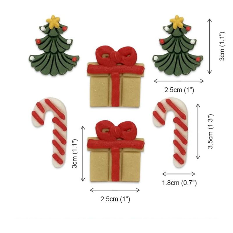 Este conjunto inclui figuras natalícias em açúcar que combinam presentes com laço vermelho, árvores de Natal decoradas e bengalas doces tradicionais, criando um efeito visual encantador que transforma qualquer sobremesa num elemento festivo. Cada peça apresenta cores vibrantes e detalhes bem definidos, e mantém a forma com estabilidade sobre bolos, cupcakes, tartes ou sobremesas geladas. A aplicação é simples, e o conjunto oferece variação suficiente para criar composições criativas que se adaptam a diferentes temas de Natal. Estas figuras são perfeitas para quem deseja adicionar um toque alegre e acolhedor às suas criações culinárias.