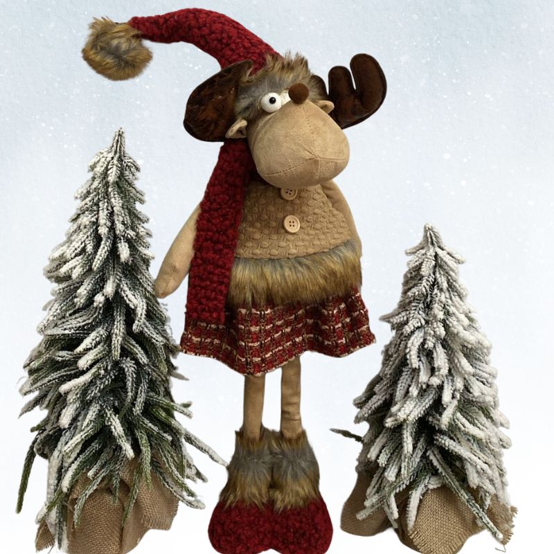 Com pernas ajustáveis entre 58 e 78 cm, esta doce rena adapta-se a qualquer espaço — desde a sala de estar até à entrada da casa.