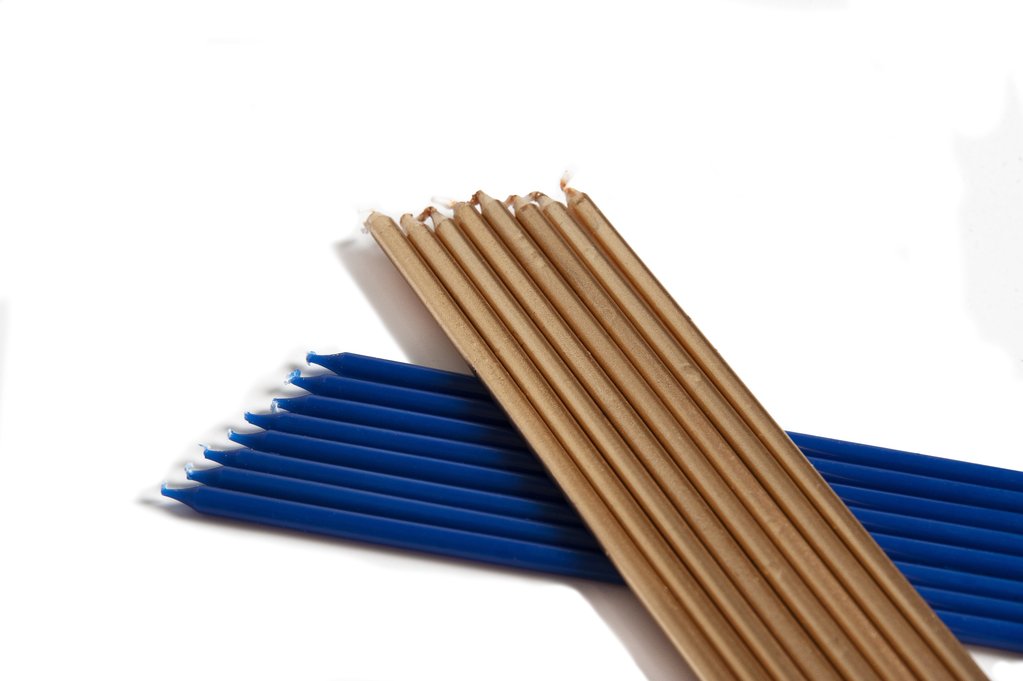 Velas Altas Azuis e Douradas 18cm – Pack 16